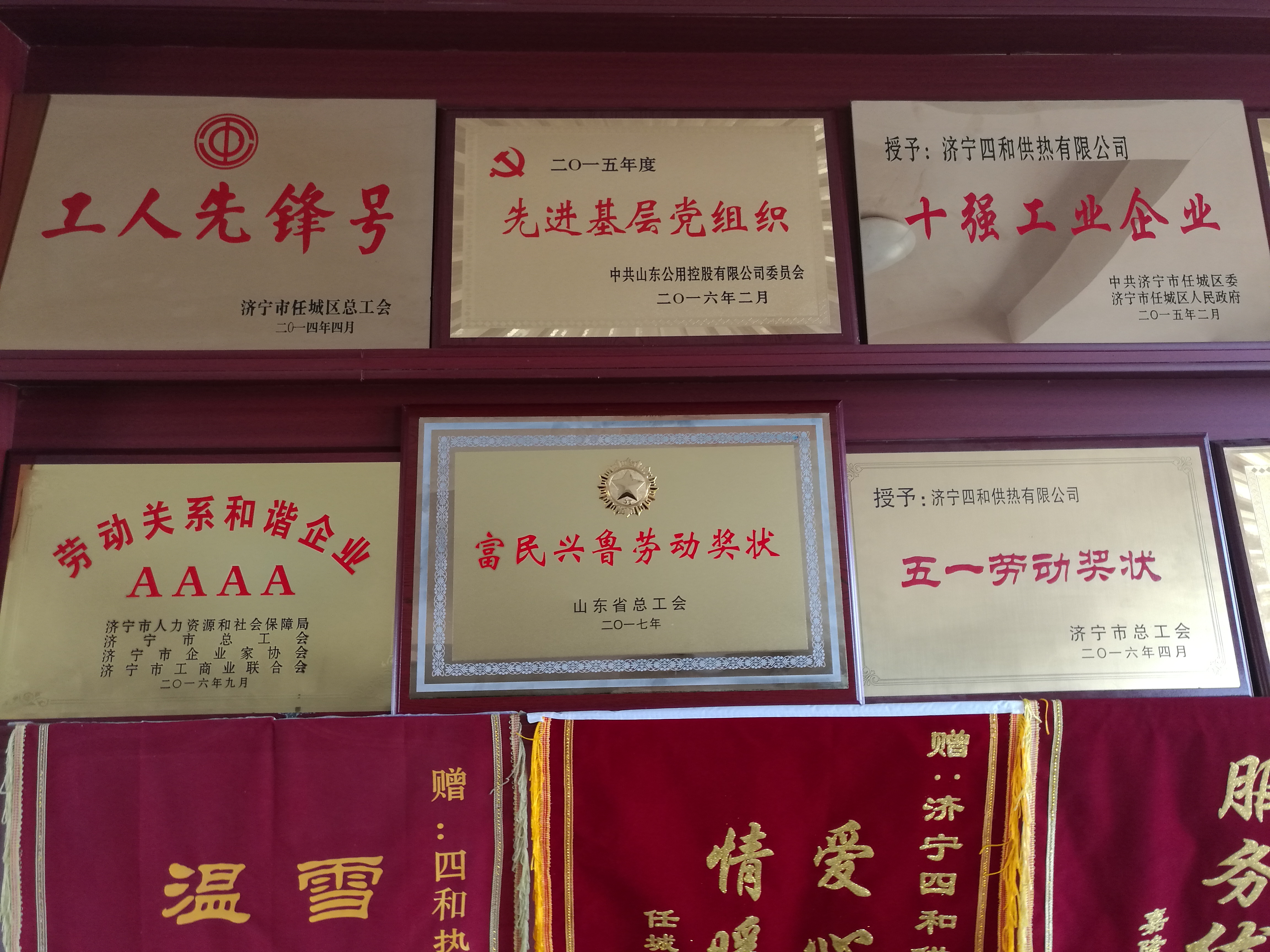 近年來,四和供熱公司憑借豐富的管理經(jīng)驗和良好的社會美譽度,通過了國際標(biāo)準(zhǔn)化組織制定的“質(zhì)量管理體系、環(huán)境管理體系、職業(yè)健康安全”三個體系一體整合認證,先后榮獲山東省管理示范企業(yè)、山東省誠信企業(yè)、濟寧市第六屆關(guān)心國防建設(shè)十佳單位、“工人先鋒號”、濟寧市職業(yè)道德十佳集體、濟寧市稅收貢獻支柱企業(yè)、AAAA級勞動關(guān)系和諧企業(yè)等榮譽稱號,并連續(xù)六年被任城區(qū)政府評為城區(qū)“十強工業(yè)企業(yè)”。