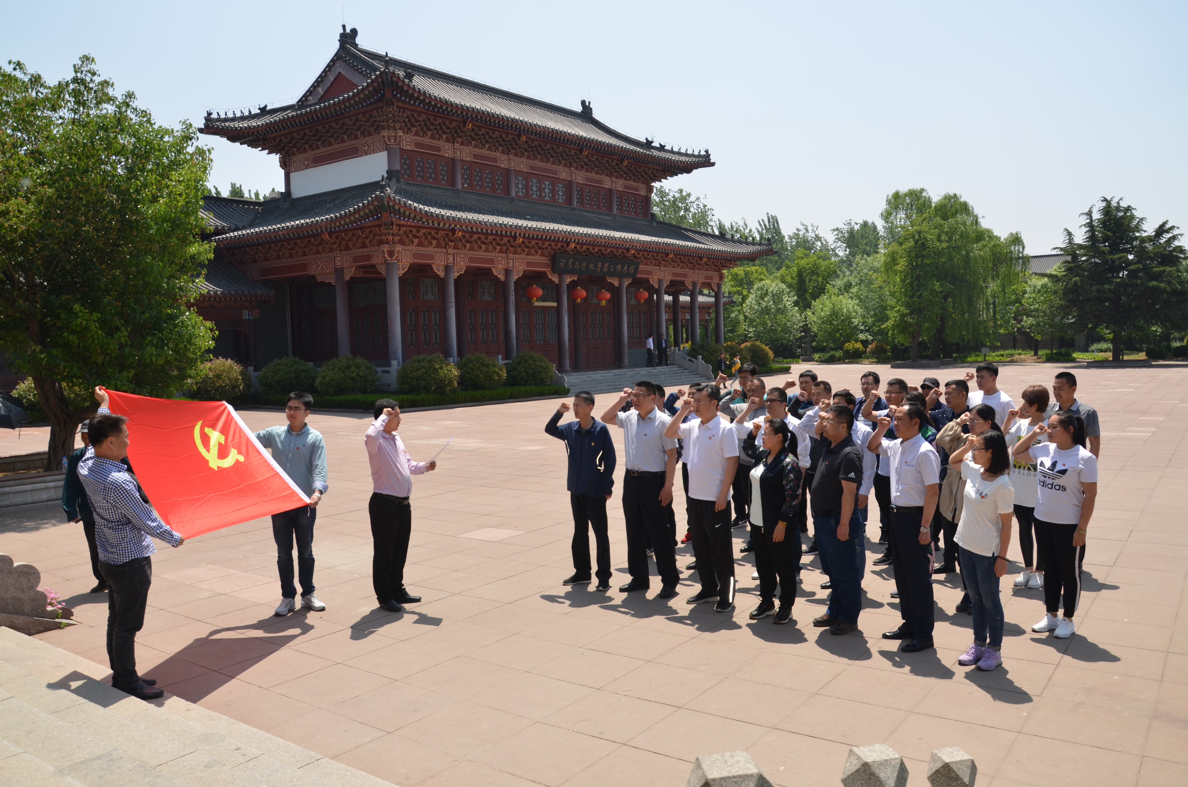 參觀結(jié)束后,全體黨員在山東抗日根據(jù)地紀(jì)念館前,在鮮紅的黨旗下,佩戴黨徽,舉起右手、握緊拳頭,莊嚴(yán)宣誓。通過重溫入黨誓詞,讓黨員重溫入黨宣誓時的莊嚴(yán)承諾和堅(jiān)定決心,在黨旗下接受心靈的凈化和洗禮,牢記共產(chǎn)黨員的政治責(zé)任和歷史使命,不斷保持共產(chǎn)黨員的先進(jìn)性,以更加飽滿的熱情投身于工作,切實(shí)發(fā)揮共產(chǎn)黨員的先鋒模范作用,不忘初心,牢記使命,永葆共產(chǎn)黨員的政治本色。