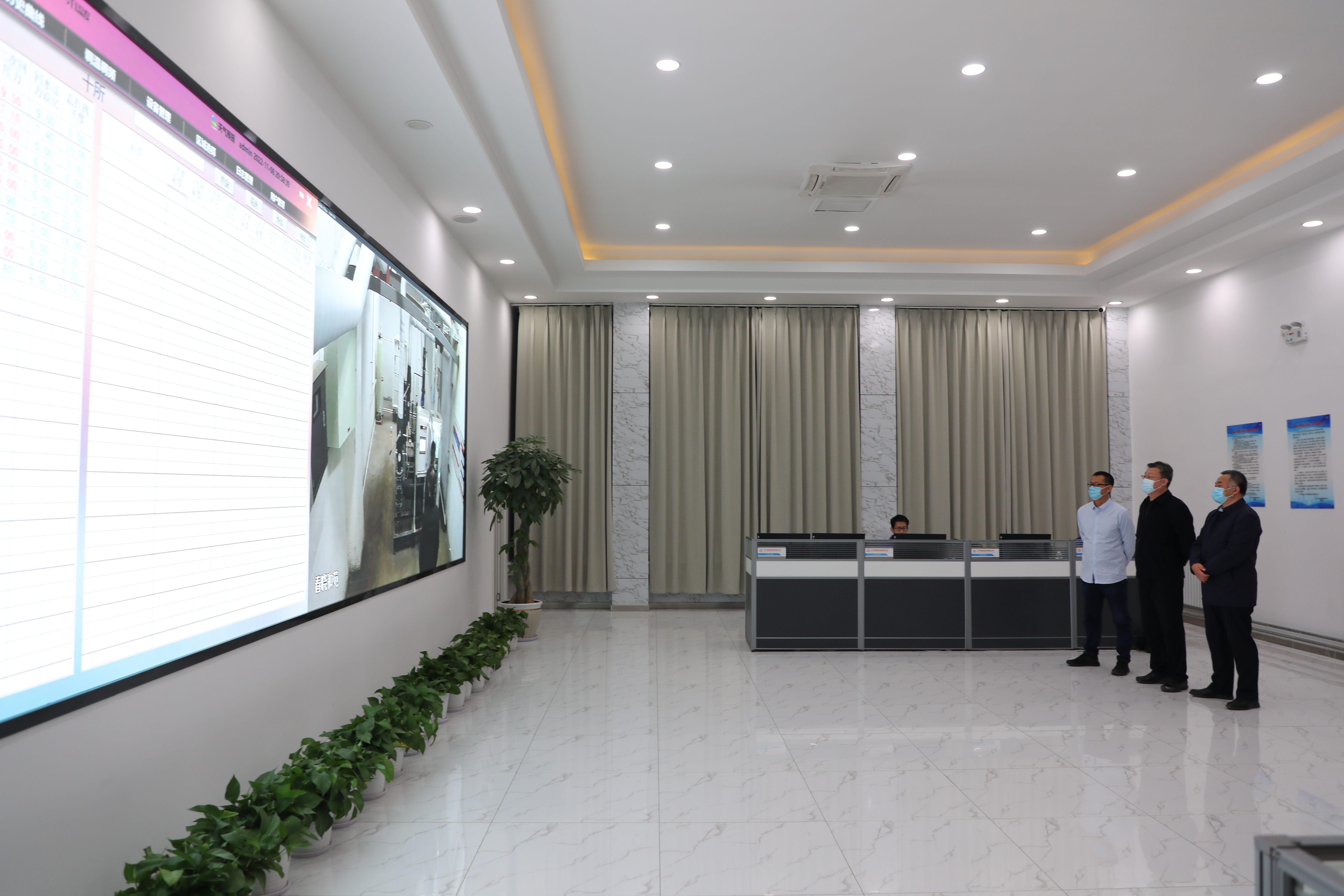 智慧熱網(wǎng)調(diào)度中心,公司領(lǐng)導(dǎo)班子及工作人員正在密切監(jiān)控著屏幕上的供水溫度、回水溫度、供水壓力、回水壓力、計(jì)算瞬時熱量等數(shù)據(jù)信息,及時調(diào)整相關(guān)供熱參數(shù),確保供熱管道在安全運(yùn)行的前提下逐步升溫。