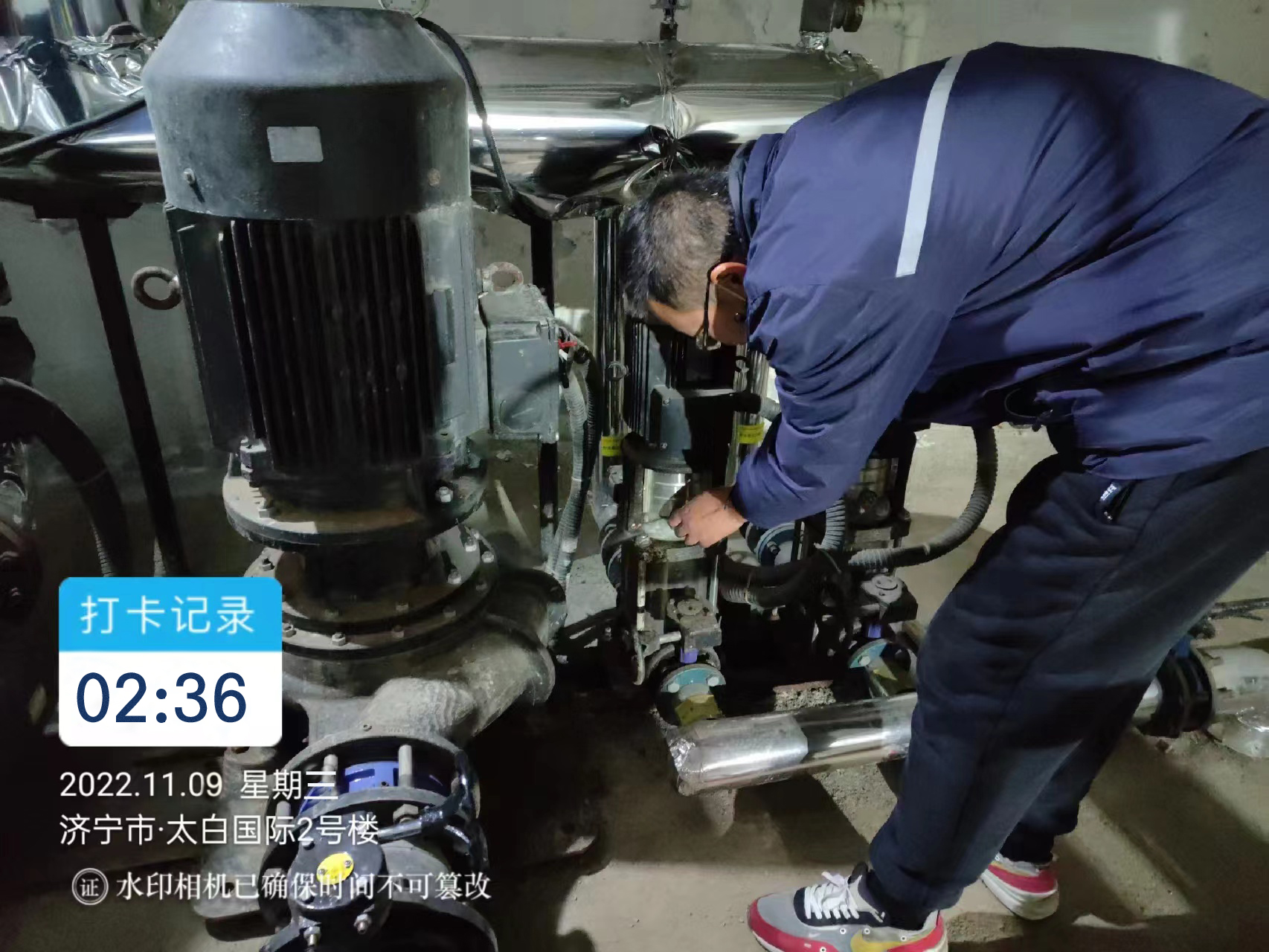 9日凌晨02:36,供熱運(yùn)行人員正在認(rèn)真排查著管道接口以及換熱站的儀器儀表。供熱初始,隨著供熱溫度的增加和管道運(yùn)行環(huán)境的變化,供熱管道和設(shè)備接口處易出現(xiàn)跑冒滴漏情況。