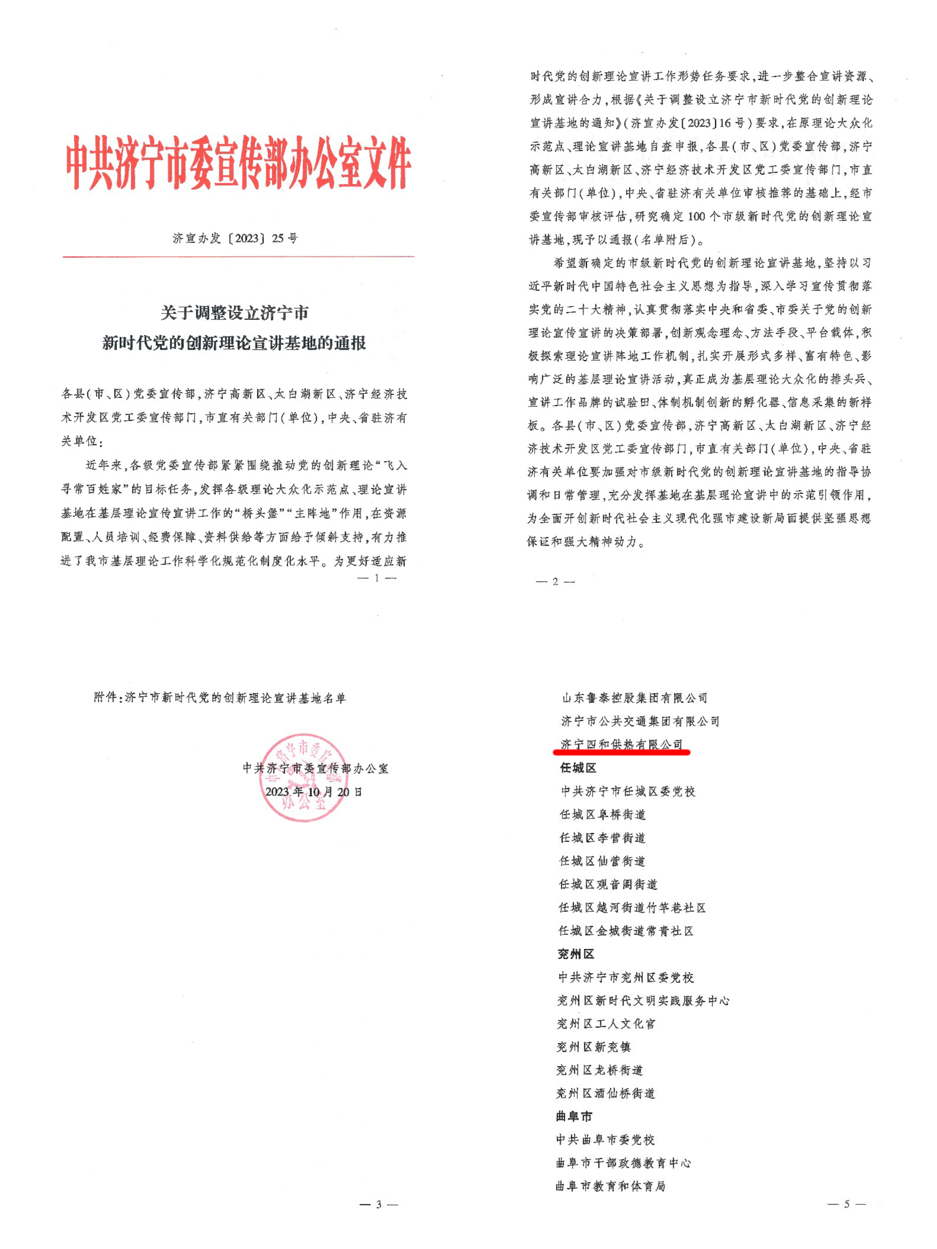 濟(jì)寧四和供熱有限公司獲評(píng) “濟(jì)寧市新時(shí)代黨的創(chuàng)新理論宣講基地”
